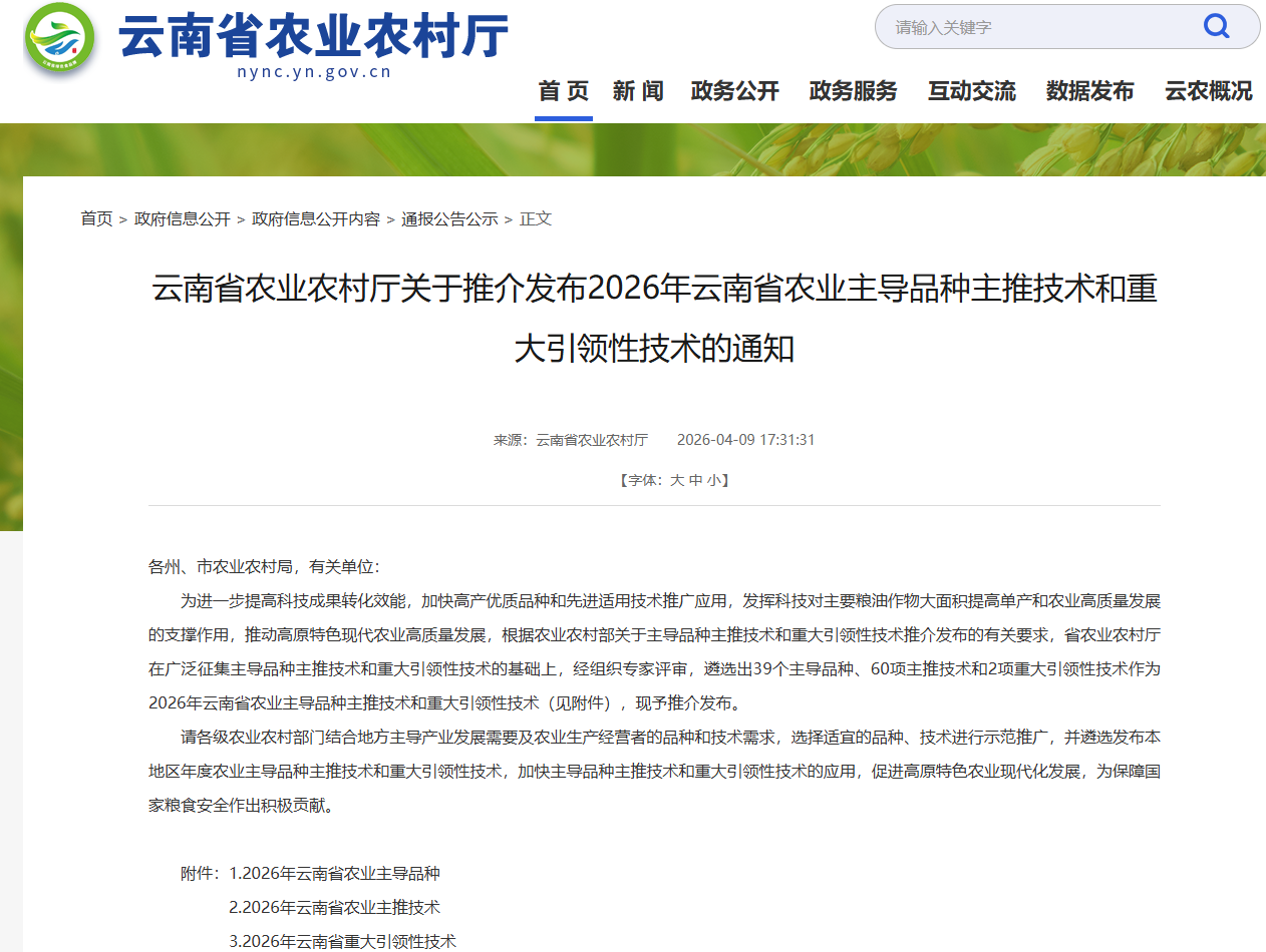 苗鄉(xiāng)抗七1號(hào)入選2026年云南省農(nóng)業(yè)主導(dǎo)品種,這是‘苗鄉(xiāng)抗七1號(hào)’繼2023—2024連續(xù)兩年入選云南省農(nóng)業(yè)主導(dǎo)品種后第三次獲此省級(jí)認(rèn)可!